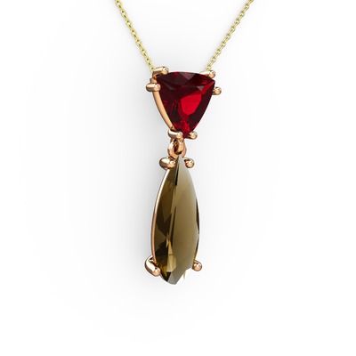 Garnet ve dumanlı kuvars 8 ayar rose altın kolye (40 cm gümüş rolo zincir)