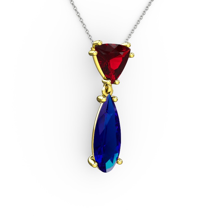 Garnet ve lab safir 18 ayar altın kolye (40 cm beyaz altın rolo zincir)