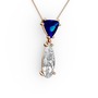 Lab safir ve beyaz zirkon 925 ayar rose altın kaplama gümüş kolye (40 cm gümüş rolo zincir)
