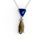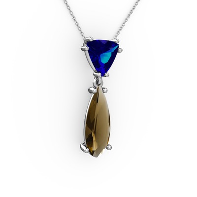 Lab safir ve dumanlı kuvars 14 ayar beyaz altın kolye (40 cm beyaz altın rolo zincir)