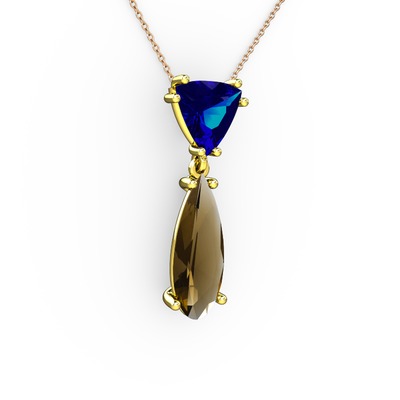 Lab safir ve dumanlı kuvars 925 ayar altın kaplama gümüş kolye (40 cm gümüş rolo zincir)