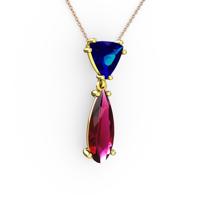 Lab safir ve rodolit garnet 14 ayar altın kolye (40 cm rose altın rolo zincir)