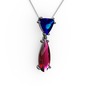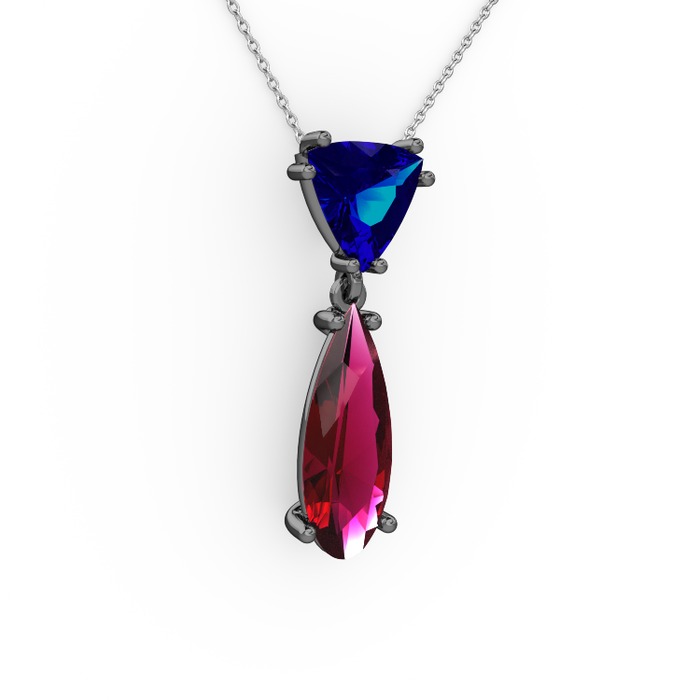 Lab safir ve rodolit garnet 925 ayar siyah rodyum kaplama gümüş kolye (40 cm beyaz altın rolo zincir)