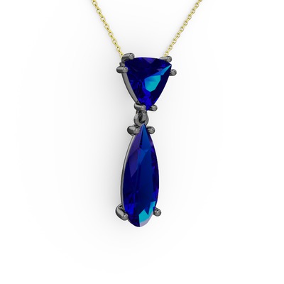 Lab safir 925 ayar siyah rodyum kaplama gümüş kolye (40 cm altın rolo zincir)