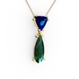 Lab safir ve yeşil kuvars 14 ayar altın kolye (40 cm gümüş rolo zincir)