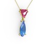 Pembe kuvars ve akuamarin 18 ayar altın kolye (40 cm altın rolo zincir)