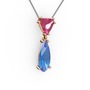 Pembe kuvars ve akuamarin 925 ayar rose altın kaplama gümüş kolye (40 cm gümüş rolo zincir)
