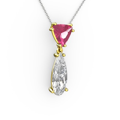 Pembe kuvars ve beyaz zirkon 18 ayar altın kolye (40 cm gümüş rolo zincir)