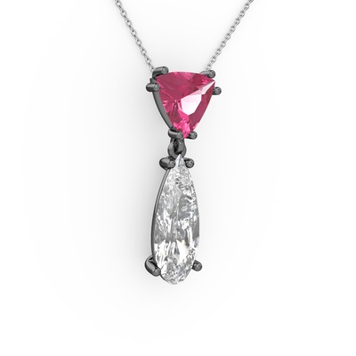 Pembe kuvars ve beyaz zirkon 925 ayar siyah rodyum kaplama gümüş kolye (40 cm beyaz altın rolo zincir)