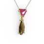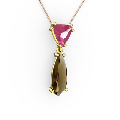 Pembe kuvars ve dumanlı kuvars 14 ayar altın kolye (40 cm rose altın rolo zincir)
