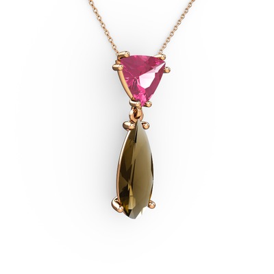 Pembe kuvars ve dumanlı kuvars 18 ayar rose altın kolye (40 cm rose altın rolo zincir)
