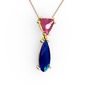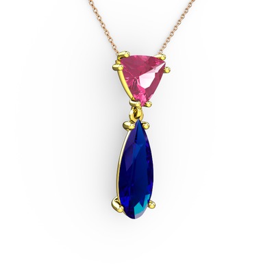 Pembe kuvars ve lab safir 18 ayar altın kolye (40 cm rose altın rolo zincir)