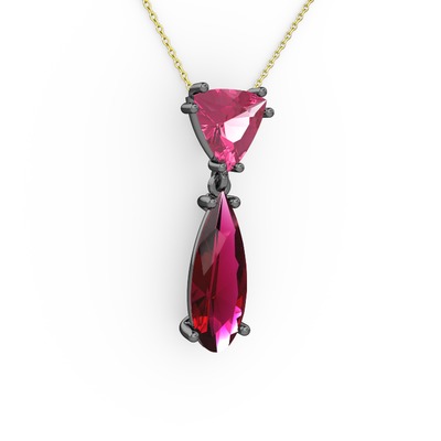 Pembe kuvars ve rodolit garnet 925 ayar siyah rodyum kaplama gümüş kolye (40 cm altın rolo zincir)