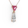 Pembe kuvars ve swarovski 14 ayar rose altın kolye (40 cm rose altın rolo zincir)