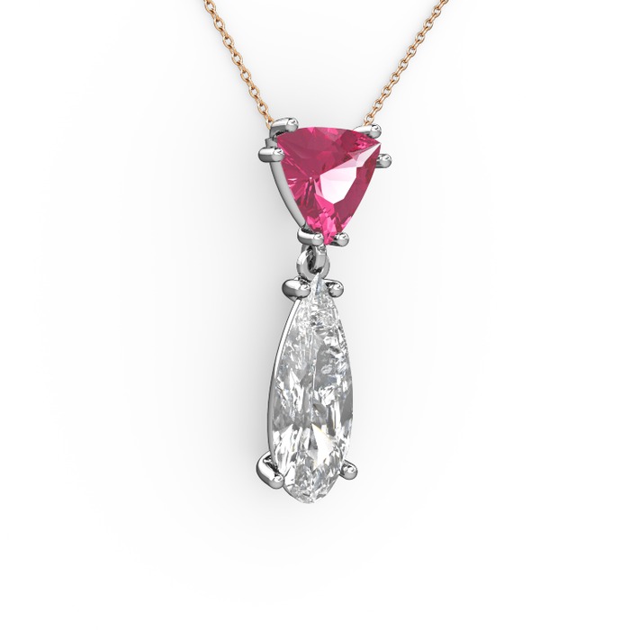 Pembe kuvars ve swarovski 8 ayar beyaz altın kolye (40 cm rose altın rolo zincir)