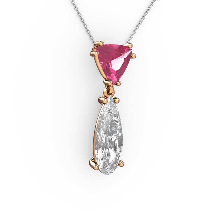 Pembe kuvars ve swarovski 8 ayar rose altın kolye (40 cm beyaz altın rolo zincir)