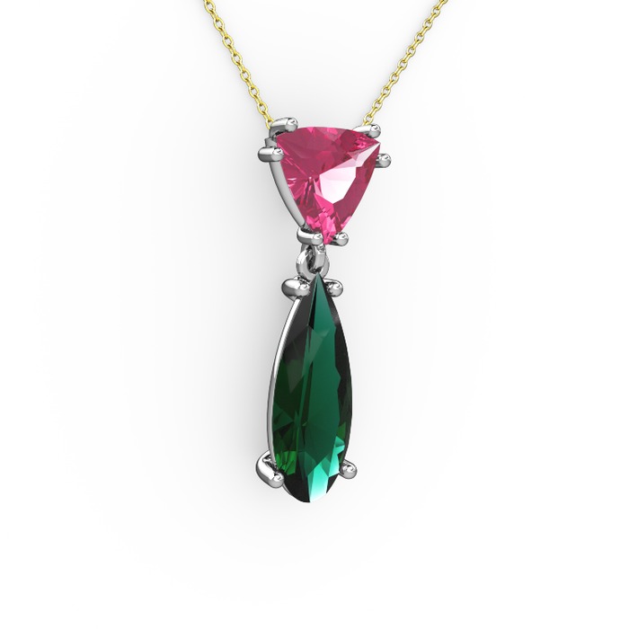 Pembe kuvars ve yeşil kuvars 18 ayar beyaz altın kolye (40 cm altın rolo zincir)