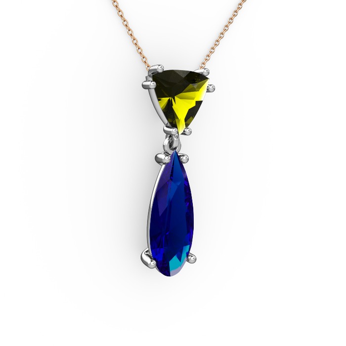 Peridot ve lab safir 925 ayar gümüş kolye (40 cm rose altın rolo zincir)
