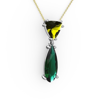 Peridot ve yeşil kuvars 18 ayar beyaz altın kolye (40 cm altın rolo zincir)