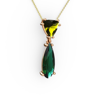 Peridot ve yeşil kuvars 18 ayar rose altın kolye (40 cm altın rolo zincir)