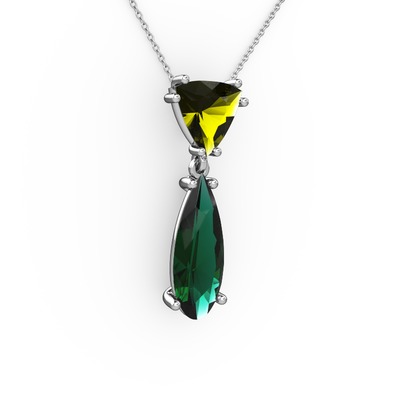 Peridot ve yeşil kuvars 8 ayar beyaz altın kolye (40 cm beyaz altın rolo zincir)