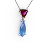 Rodolit garnet ve akuamarin 8 ayar beyaz altın kolye (40 cm gümüş rolo zincir)