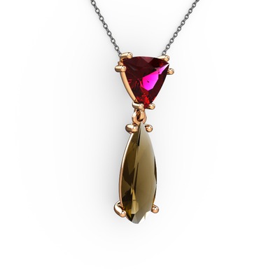 Rodolit garnet ve dumanlı kuvars 14 ayar rose altın kolye (40 cm gümüş rolo zincir)
