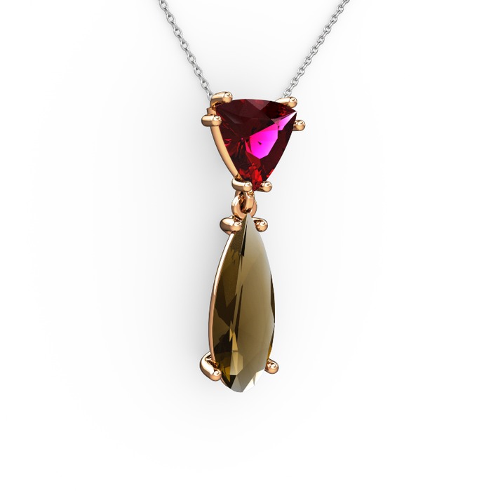 Rodolit garnet ve dumanlı kuvars 18 ayar rose altın kolye (40 cm beyaz altın rolo zincir)