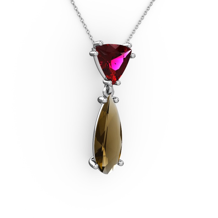 Rodolit garnet ve dumanlı kuvars 925 ayar gümüş kolye (40 cm beyaz altın rolo zincir)