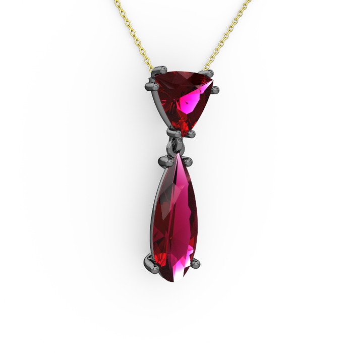 Rodolit garnet 925 ayar siyah rodyum kaplama gümüş kolye (40 cm altın rolo zincir)