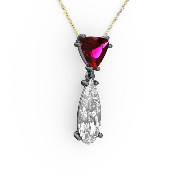 Rodolit garnet ve swarovski 925 ayar siyah rodyum kaplama gümüş kolye (40 cm altın rolo zincir)