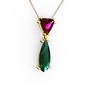 Rodolit garnet ve yeşil kuvars 18 ayar altın kolye (40 cm rose altın rolo zincir)