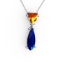 Sitrin ve lab safir 14 ayar beyaz altın kolye (40 cm beyaz altın rolo zincir)