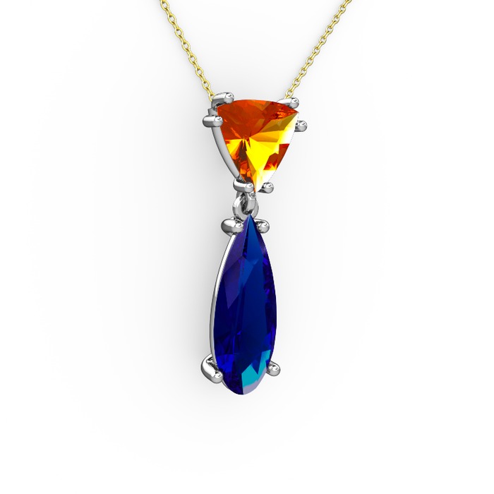 Sitrin ve lab safir 18 ayar beyaz altın kolye (40 cm altın rolo zincir)