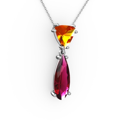Sitrin ve rodolit garnet 8 ayar beyaz altın kolye (40 cm beyaz altın rolo zincir)