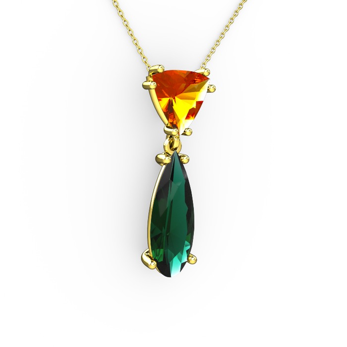 Sitrin ve yeşil kuvars 18 ayar altın kolye (40 cm altın rolo zincir)