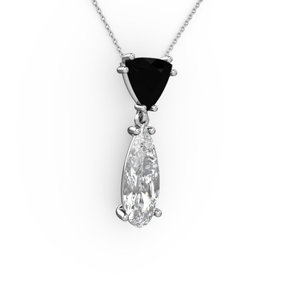 Siyah zirkon ve beyaz zirkon 14 ayar beyaz altın kolye (40 cm beyaz altın rolo zincir)