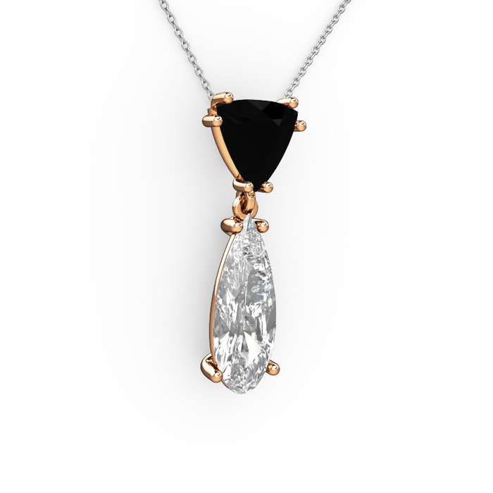 Siyah zirkon ve beyaz zirkon 18 ayar rose altın kolye (40 cm gümüş rolo zincir)