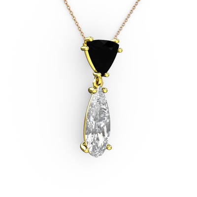 Siyah zirkon ve beyaz zirkon 8 ayar altın kolye (40 cm rose altın rolo zincir)