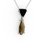 Siyah zirkon ve dumanlı kuvars 14 ayar beyaz altın kolye (40 cm beyaz altın rolo zincir)