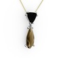 Siyah zirkon ve dumanlı kuvars 14 ayar beyaz altın kolye (40 cm gümüş rolo zincir)