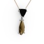 Siyah zirkon ve dumanlı kuvars 8 ayar beyaz altın kolye (40 cm rose altın rolo zincir)