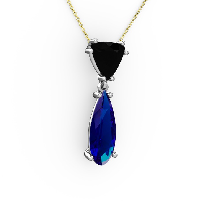 Siyah zirkon ve lab safir 14 ayar beyaz altın kolye (40 cm altın rolo zincir)