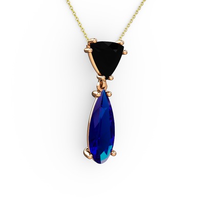 Siyah zirkon ve lab safir 925 ayar rose altın kaplama gümüş kolye (40 cm altın rolo zincir)