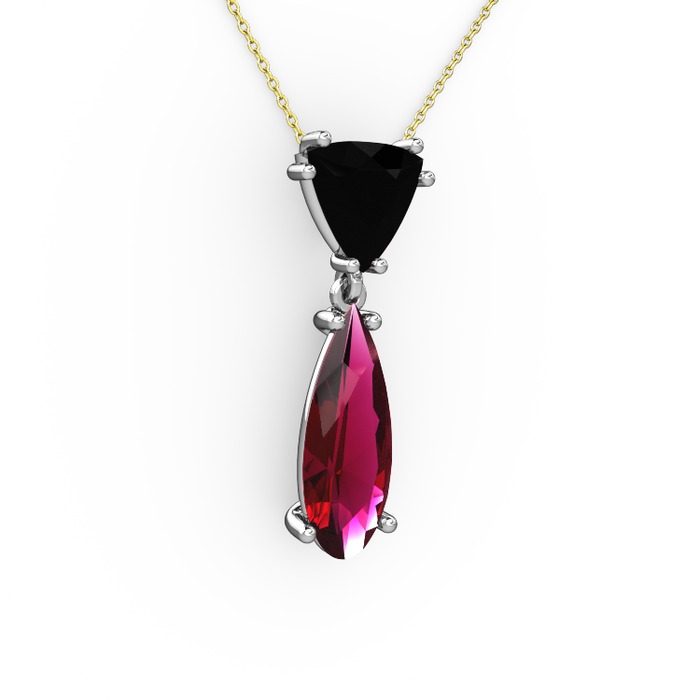 Siyah zirkon ve rodolit garnet 8 ayar beyaz altın kolye (40 cm altın rolo zincir)