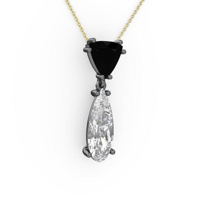 Siyah zirkon ve swarovski 925 ayar siyah rodyum kaplama gümüş kolye (40 cm altın rolo zincir)