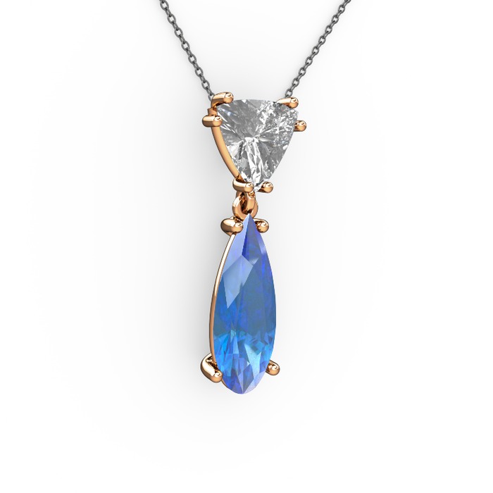 Swarovski ve akuamarin 8 ayar rose altın kolye (40 cm gümüş rolo zincir)