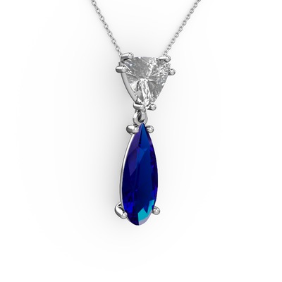 Swarovski ve lab safir 8 ayar beyaz altın kolye (40 cm beyaz altın rolo zincir)