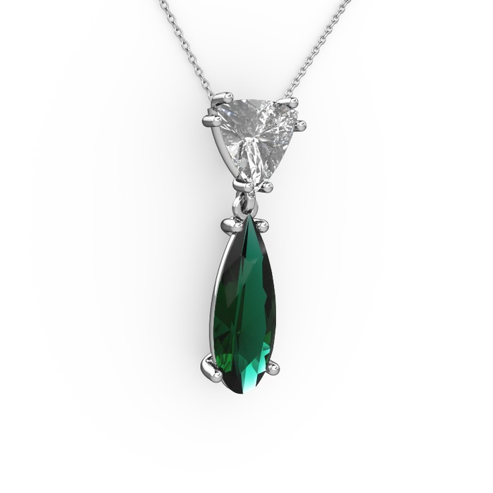Swarovski ve yeşil kuvars 14 ayar beyaz altın kolye (40 cm beyaz altın rolo zincir)