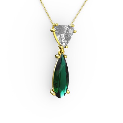 Swarovski ve yeşil kuvars 8 ayar altın kolye (40 cm altın rolo zincir)